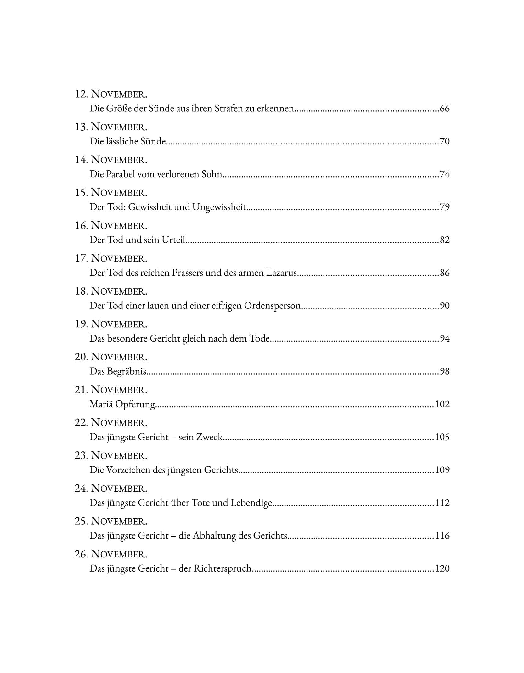 Der erste Band umfasst die Zeit vom 1. November bis zum 24. Januar und begleitet den Leser von der Betrachtung der „letzten Dinge“ bis zum Geheimnis der Menschwerdung.