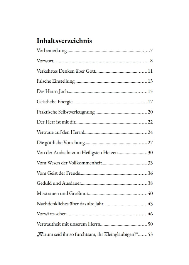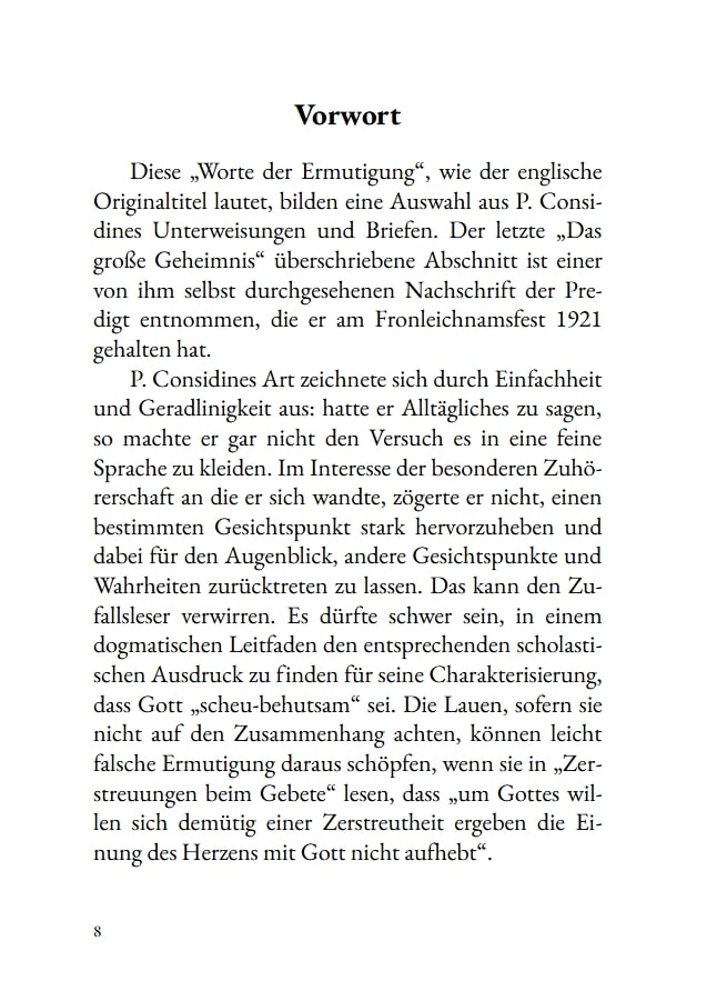 Dieses kleine Büchlein führt in jene frohe Einfachheit des Glaubens, die aus Vertrauen auf Gottes beständige Gnade erwächst. In klaren, behutsamen Worten zeigt P. Daniel Considine S. J., wie die Seele Frieden findet, wenn sie sich der liebevollen Führung des Vaters anvertraut.