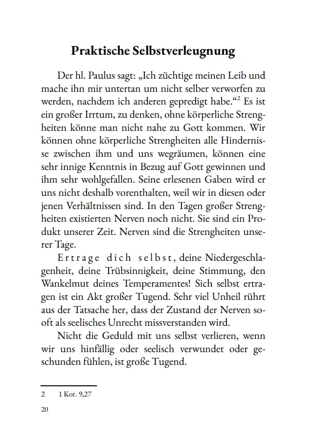 Aus seiner geistlichen Erfahrung heraus lenkt er den Blick auf die täglichen Tugenden, auf die Kraft des vertrauenden Gebetes und auf die Gegenwart Gottes in Prüfungen wie in freudigen Stunden. Seine Gedanken schenken Ermutigung, Sammlung und eine heitere Klarheit.